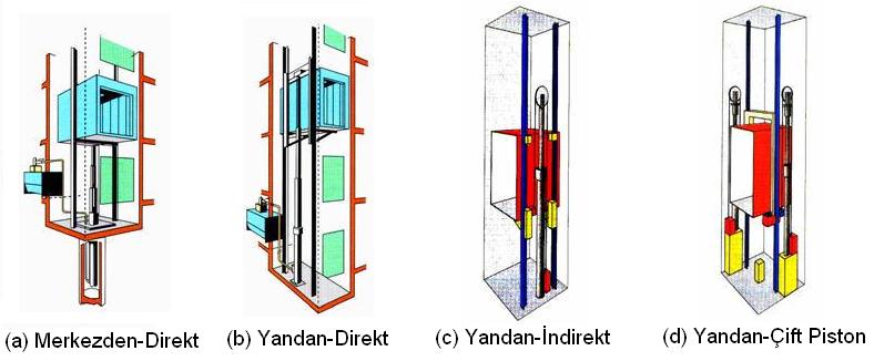 Kaldırma işi, hidrolik sıvısını, kabini doğrudan veya dolaylı olarak etkileyen bir kaldırıcıya sevk eden ve elektrikle tahrik edilen bir pompa vasıtasıyla gerçekleşen asansörlerdir.